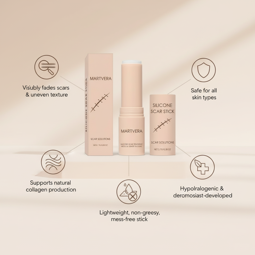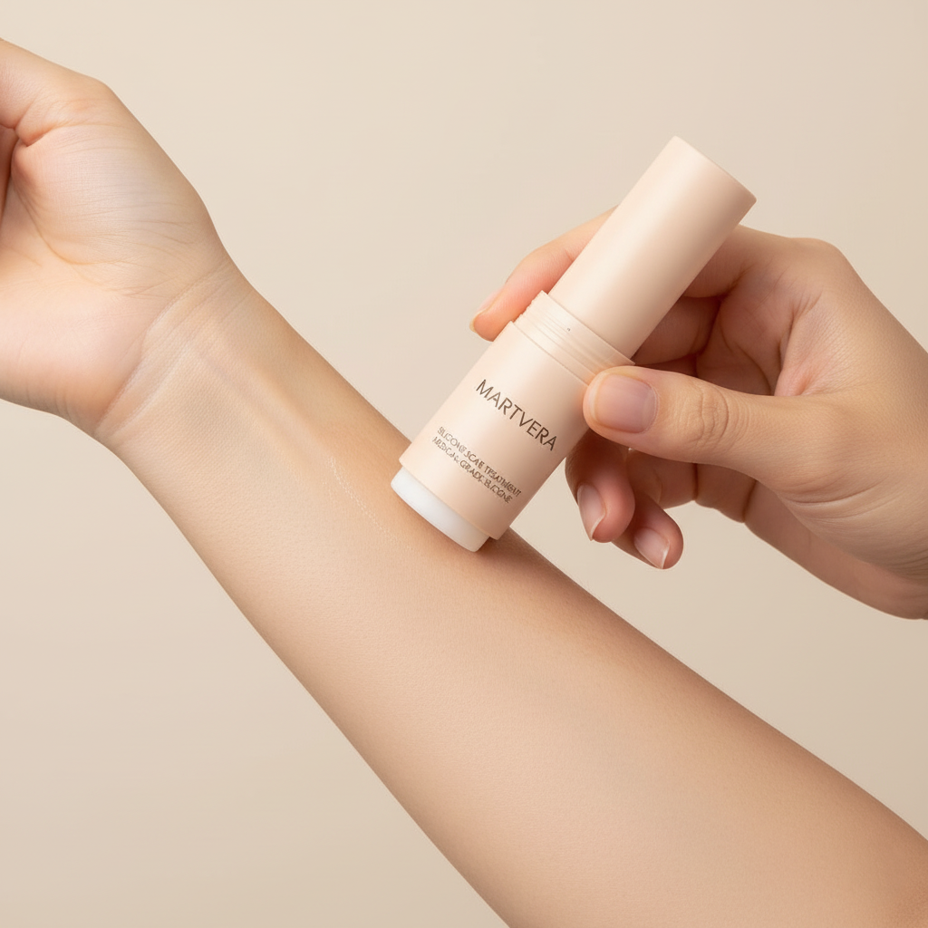 It can be used on scars, stretch marks, and post-blemish marks to help soften their appearance and support skin recovery.